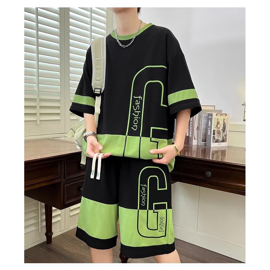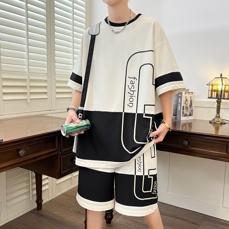 Echo Ridge Men Leisure Set กางเกงขาสั้นแขนสั้นฤดูร้อนแฟชั่นสวมชุดสูทสองชิ้น
