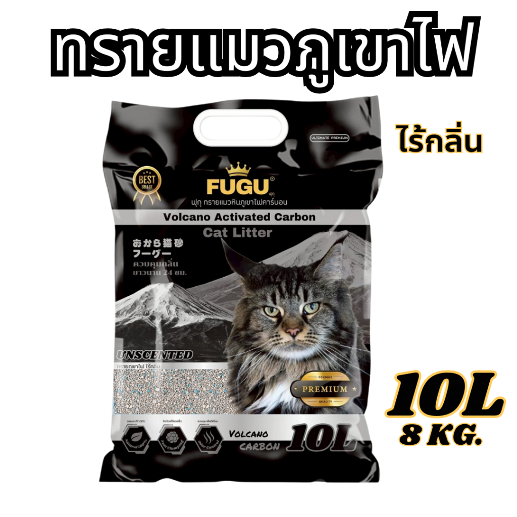 [1ถุง] ทรายแมว FUGU ภูเขาไฟ ขนาด 10 ลิตร กลิ่นหอม จับก้อนแน่น ไม่ติดขอบกระบะ