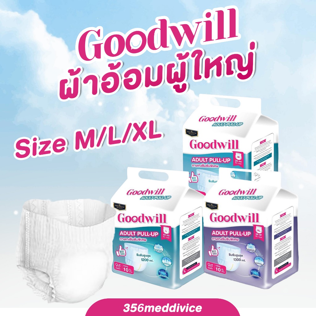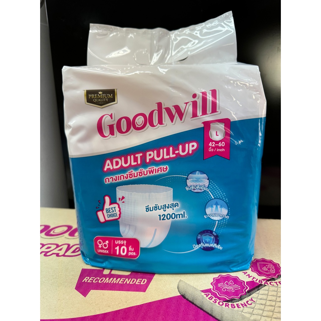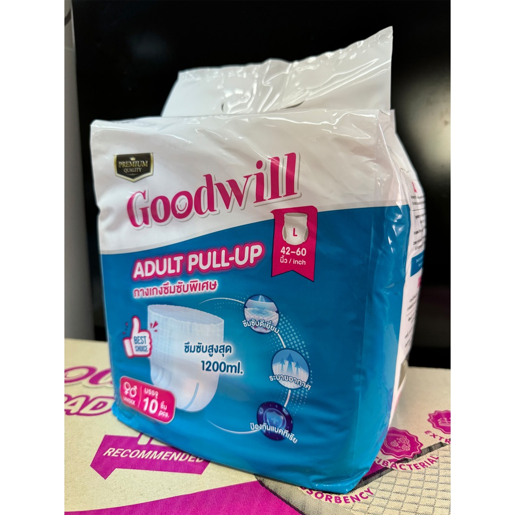 goodwill กางเกงผ้าอ้อมผู้ใหญ่ Size L ซึมซับพิเศษ 1 ห่อ 10 ชิ้น ซึมซับสูงสุด 1200ml.