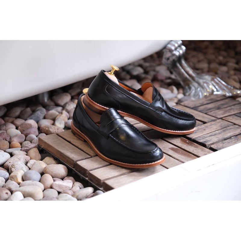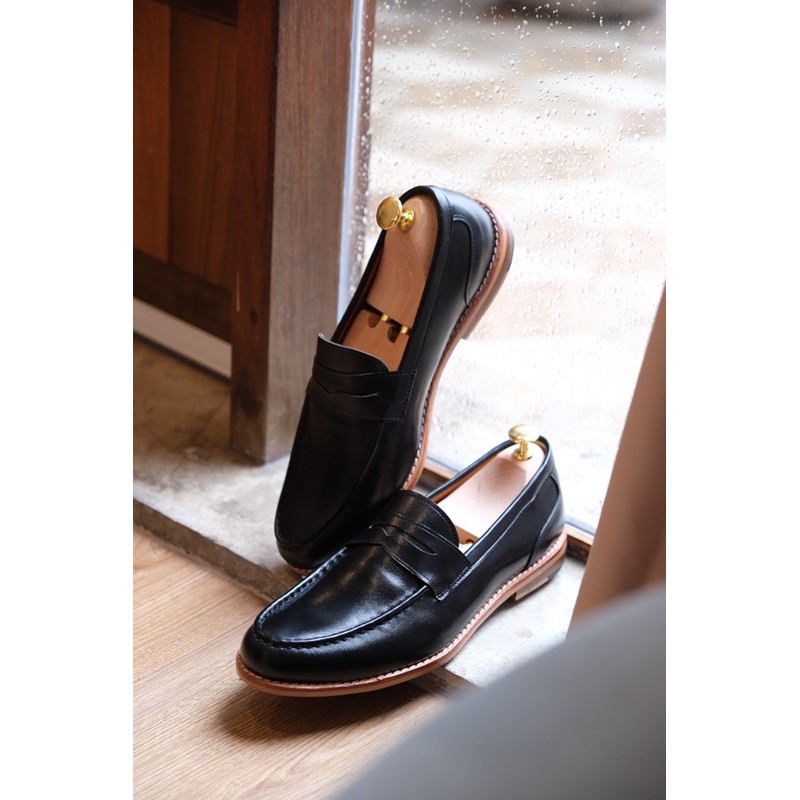 Penny Loafers (matte black) รองเท้าหนังวัวแท้