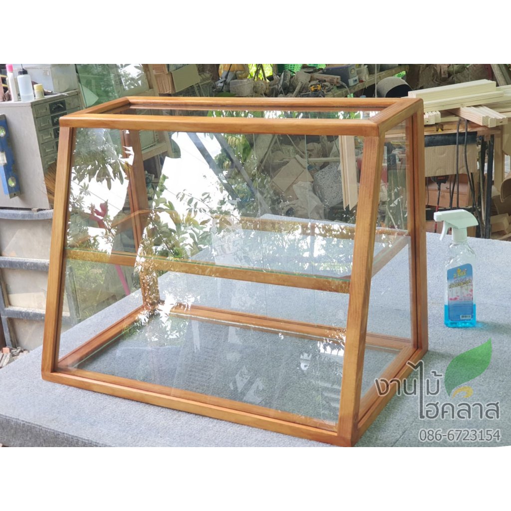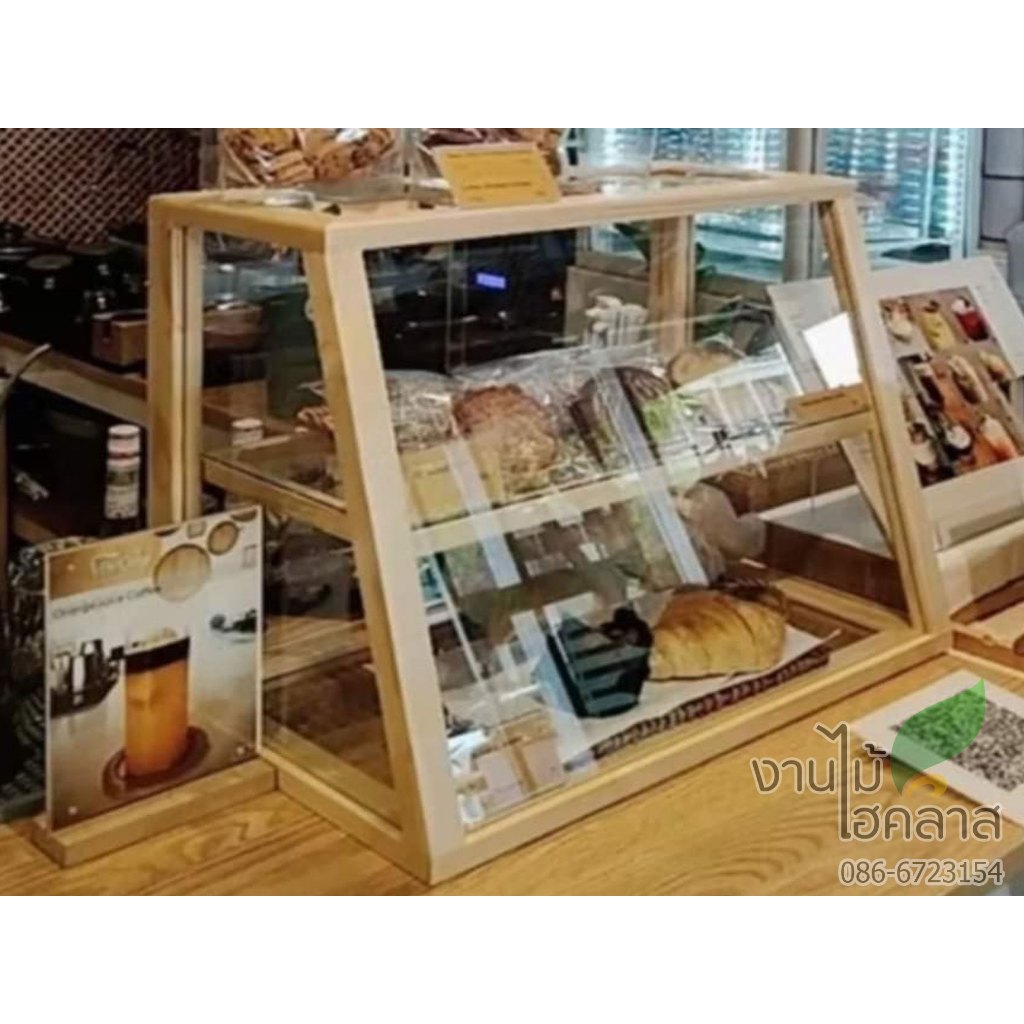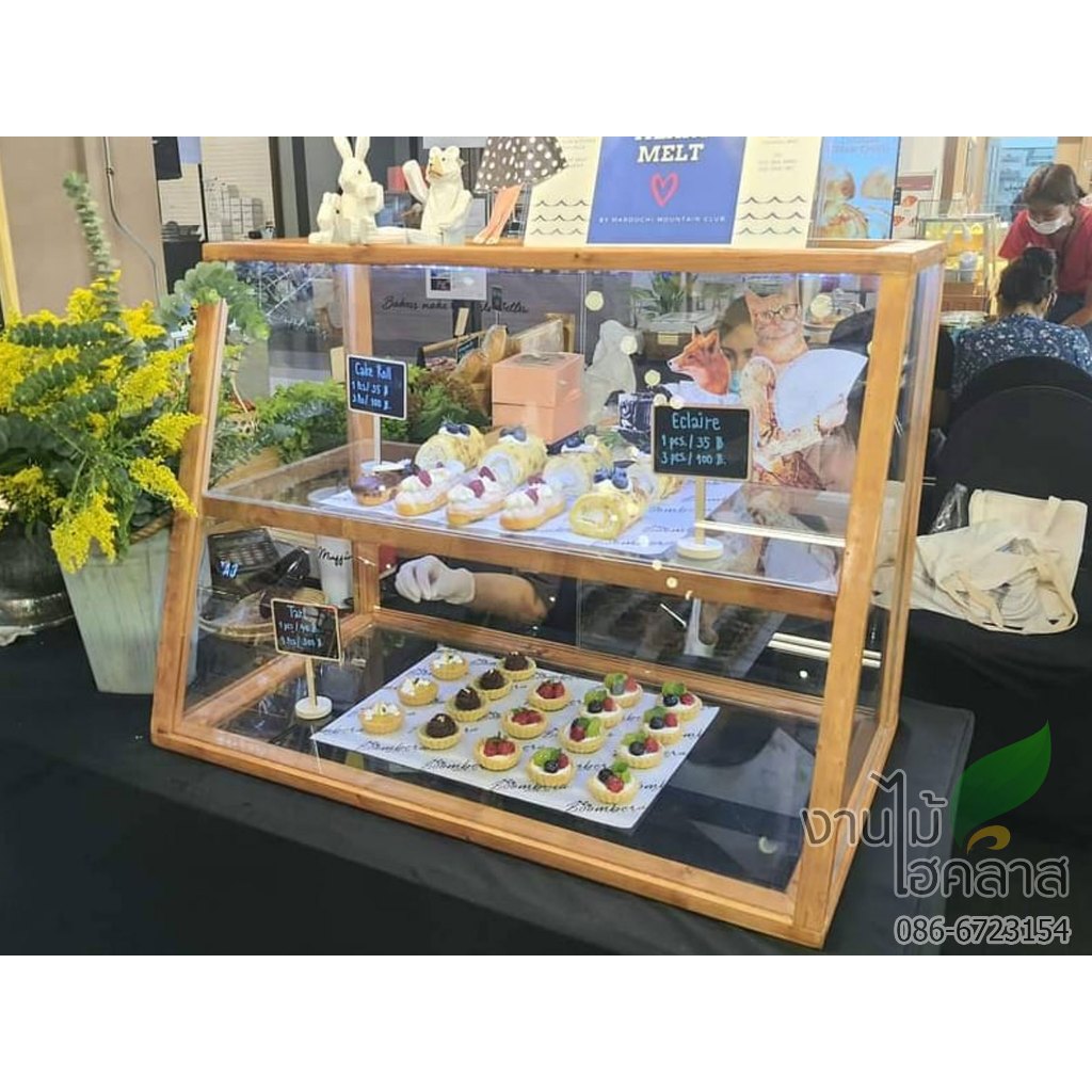 ตู้เบเกอรี่ ทรงสโลป คางหมู Size M ตู้โชว์ใส่อาหาร ตู้กระจก ขายขนม ทรงมินิมอล เลือกสีไม้ได้