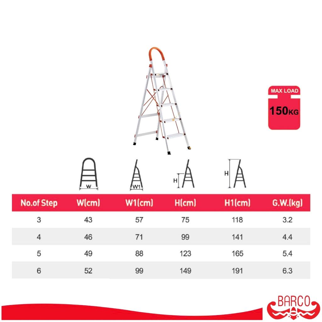 BARCO บันไดสแตนเลสมีราวจับ รุ่น 5 ขั้น 1.22 เมตร