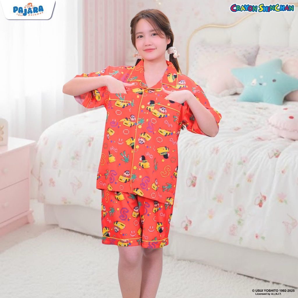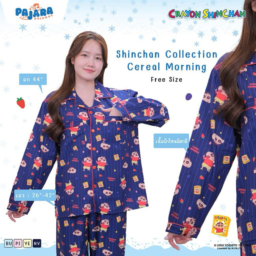 ชุดนอน ชินจัง ผ้าไหมอิตาลี่่้ Shinchan x PAJARA รอบอก 44” /48“ มีกระเป๋า 2 ข้าง ลิขสิทธิ์แท้☁️➿