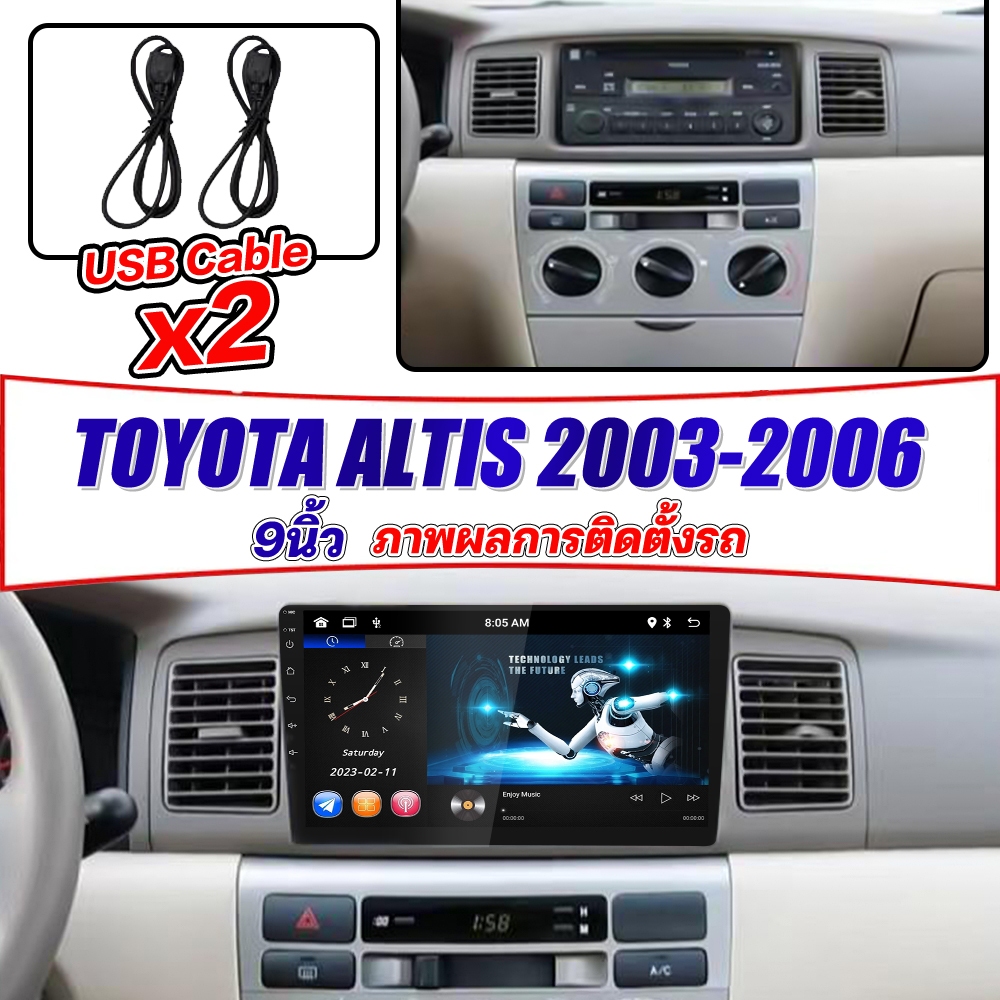 HILMAN จอแอนดรอย 9นิ้ว ใช้สำหรับ TOYOTA ALTIS 2003-2006 AppleCarplay GPS WIFI SIM 360 เครื่องเสียงติดรถยนต์