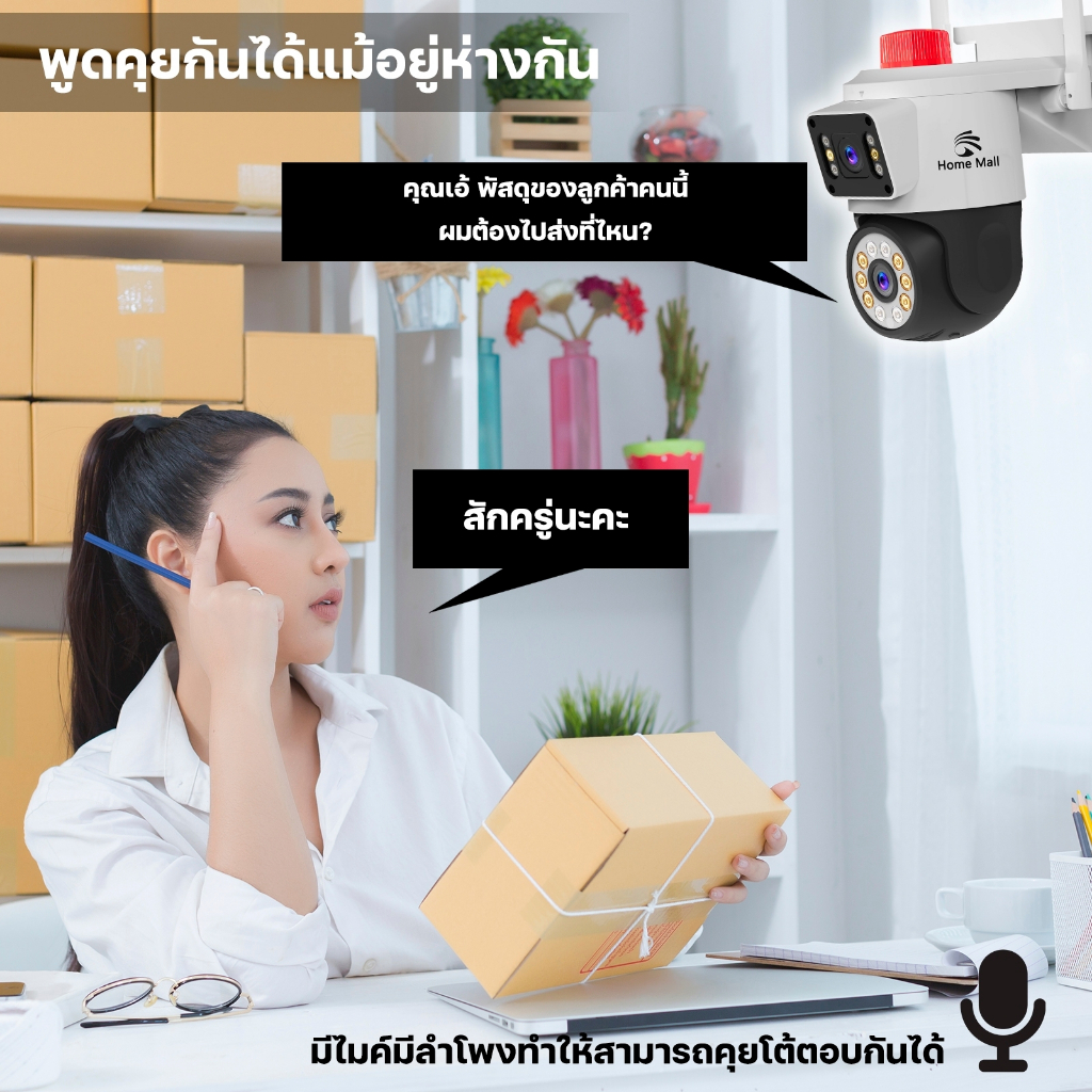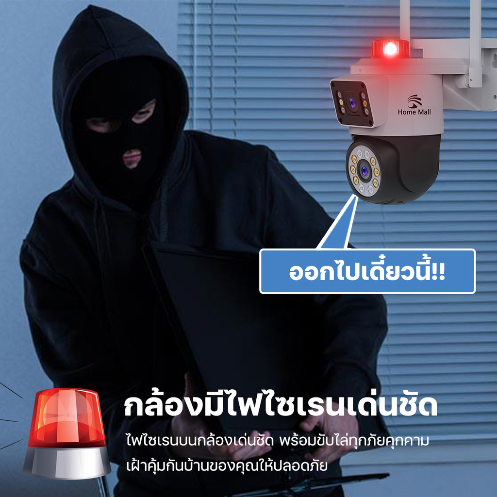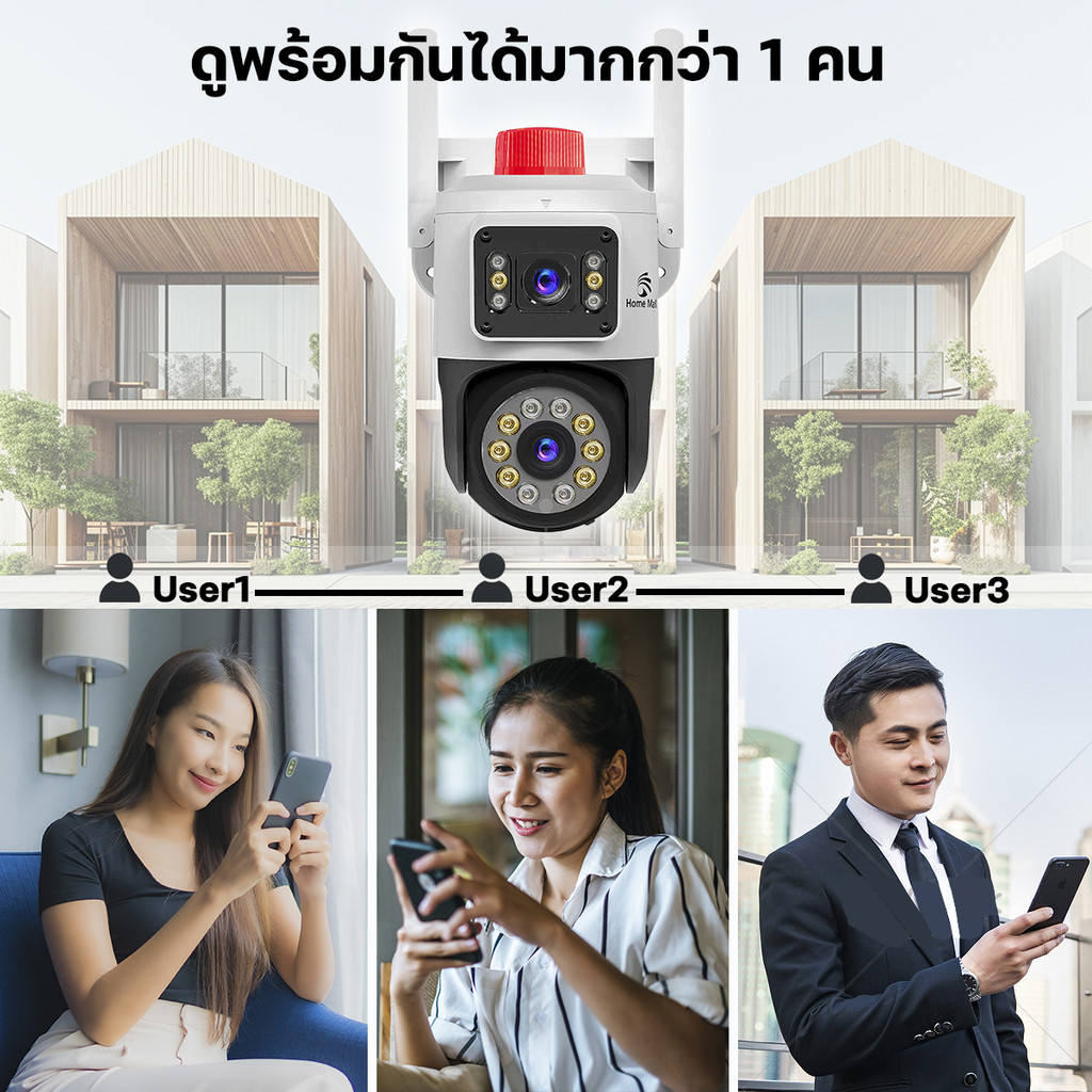 กล้องวงจรปิด homemall 2เลนส์ คมชัด5ล้านพิกเซลล ดูภาพพร้อมกัน2จอ เชื่อมต่อไวไฟ2.4จี กันน้ำติดตั้งง่าย