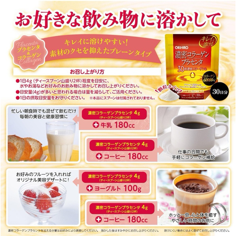 Orihiro Dense Collagen Placenta สูตรคอลลาเจนที่หนาแน่นขึ้น 30 เท่า คอลาเจนแบบผง จากญี่ปุ่น ขนาด120 กรัม (ถุงน้ำตาล)