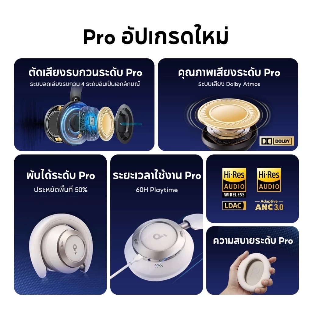 [ ประกันศูนย์ไทย 18 เดือน ] Soundcore Space One Pro หูฟังครอบหูตัวท็อปของค่าย จัดเต็มรองรับ Hi-Res