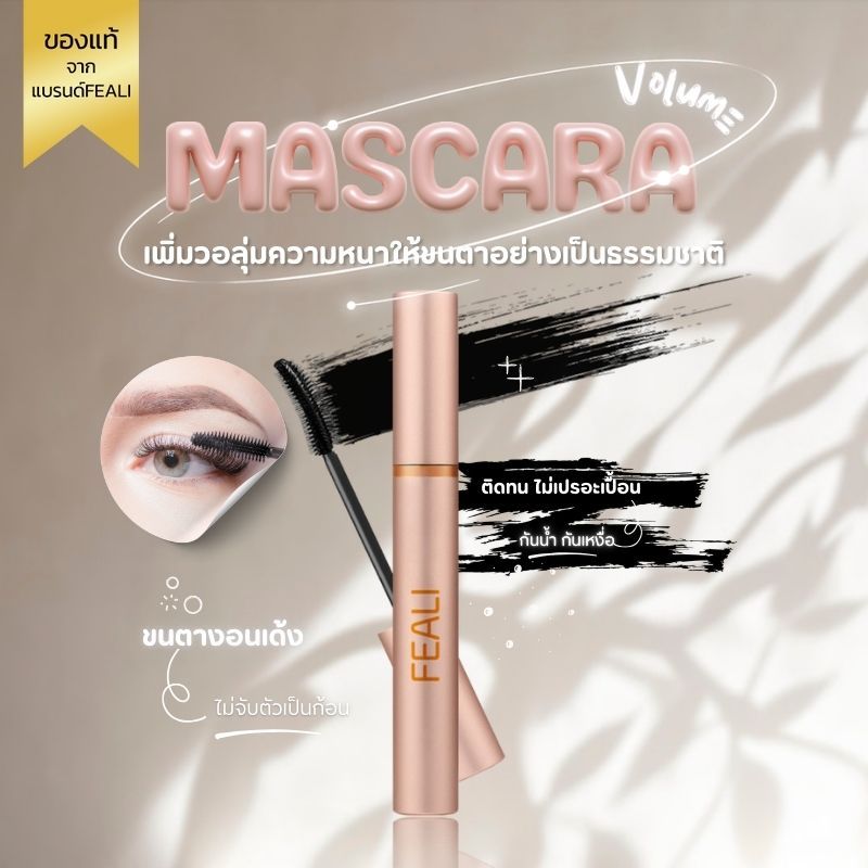 (สินค้าใหม่)FEALI MASCARA กันน้ำ มาสคาร่าขนตายาว ขนตางอน เป็นธรรมชาติ หนาและติดทน จัดทรงได้ ไม่เลอะระหว่างวัน
