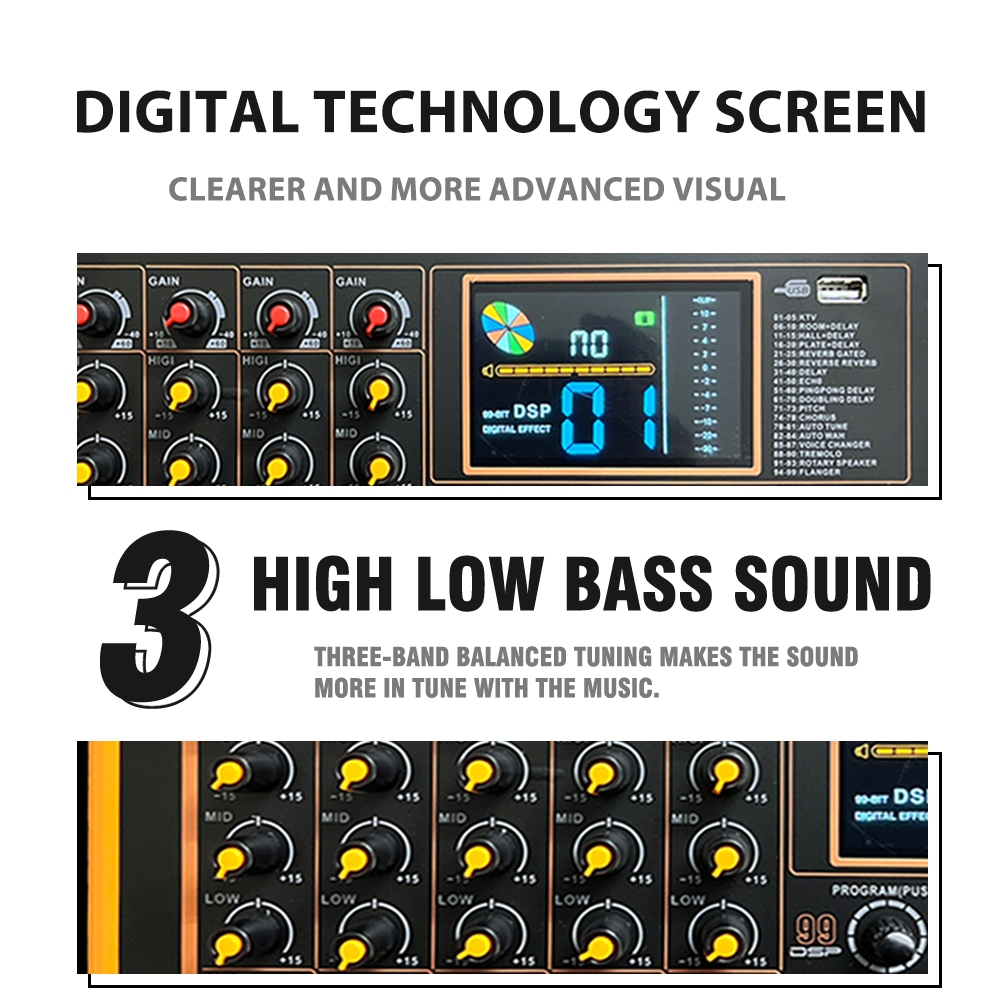 มิกเซอร์เสียง BOS ระดับมืออาชีพ 4/6 แชนแนล พร้อมเอฟเฟ็กต์รีเวิร์บ DSP99 ในตัว และการเชื่อมต่อ Bluetooth 5.0
