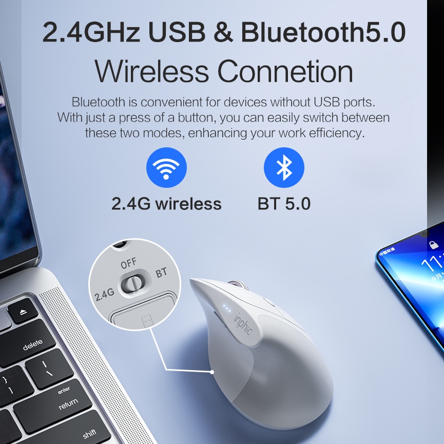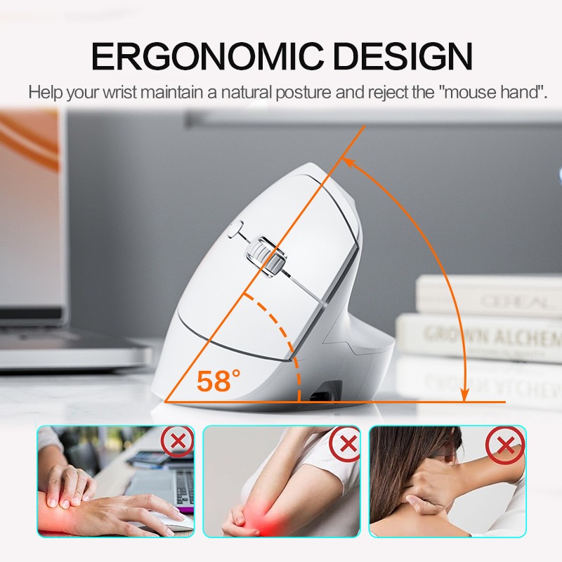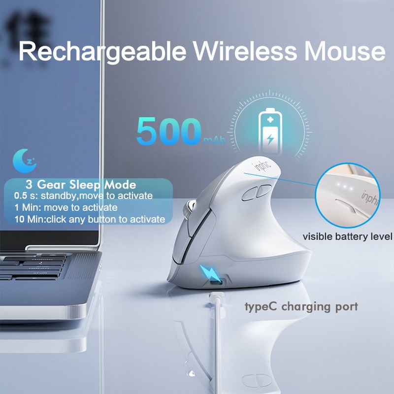 Inphic X9 เมาส์ไร้สาย Bluetooth เมาส์แนวตั้งErgonomic 12800DPI ไร้สายเงียบคลิกเมาส์สําหรับแล็ปท็อป PC Windows Mac OS