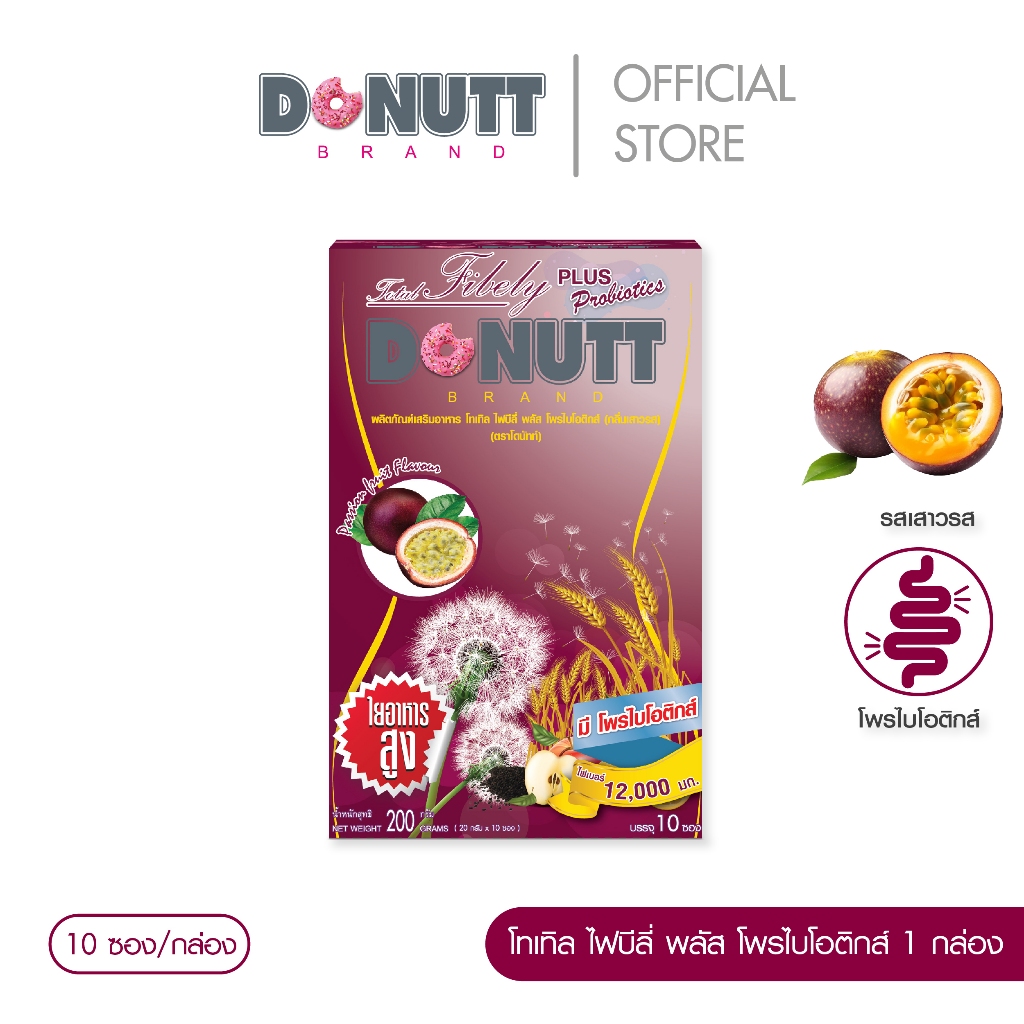 Donutt Brand ดีท็อกซ์ โพรไบโอติกส์ Donutt โทเทิล ไฟบีลี่ พลัส โพรไบโอติกส์ ไฟเบอร์ กลิ่นเสาวรส 1 กล่อง
