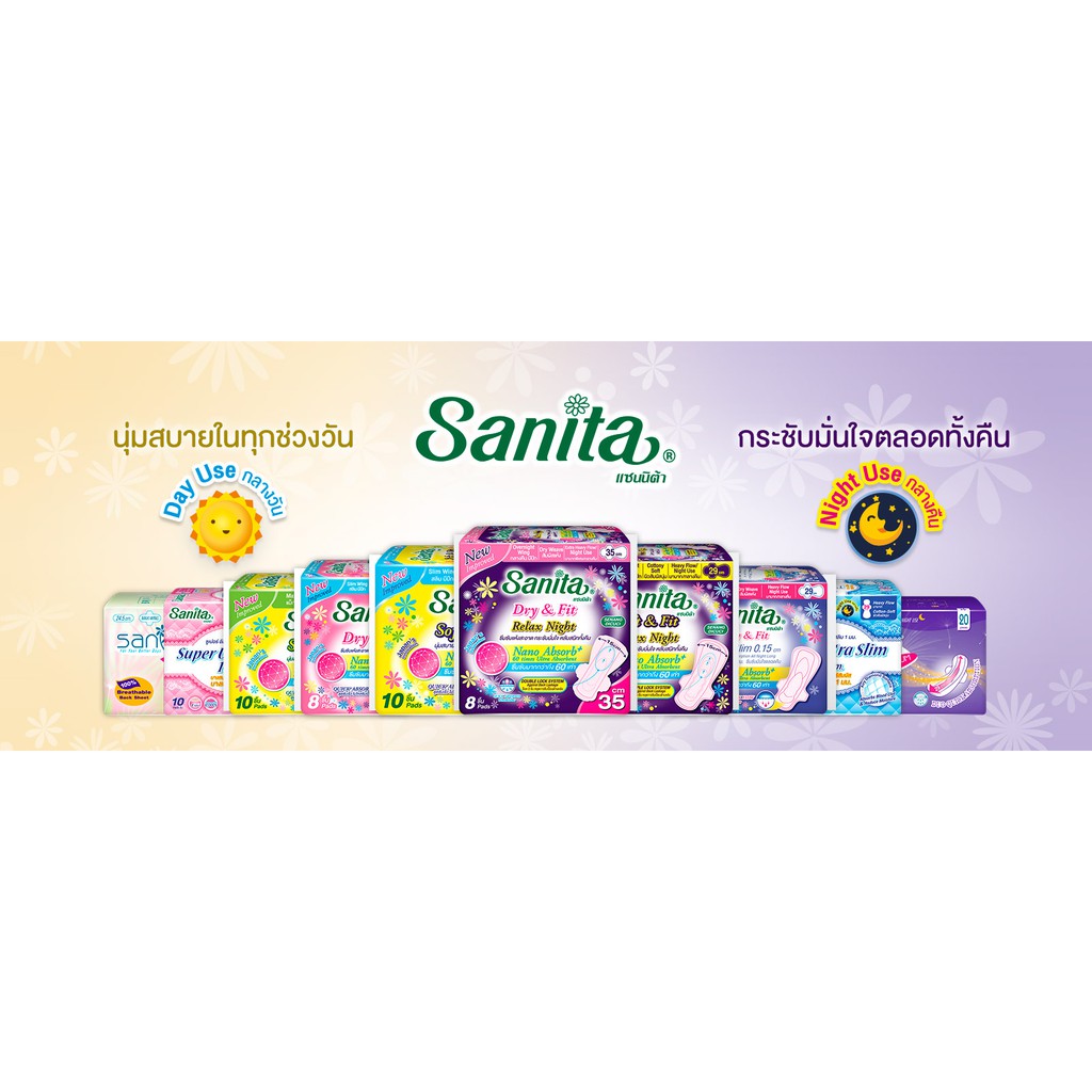 Sanita/แซนนิต้า ผ้าอนามัย ซอฟท์ & ฟิต ผิวสัมผัสนุ่ม กลางคืน มีปีก 35ซม. 4ชิ้น/ห่อ