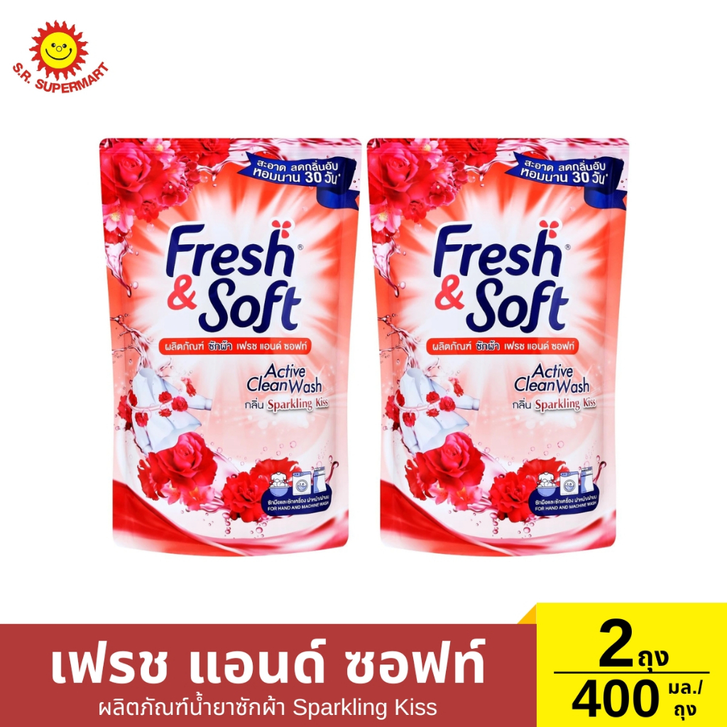 <<<1แถม1>>> เฟรชแอนด์ซอฟท์ นํ้ายาซักผ้า กลิ่นสปาร์คกิ้ง คิส 400 มล.