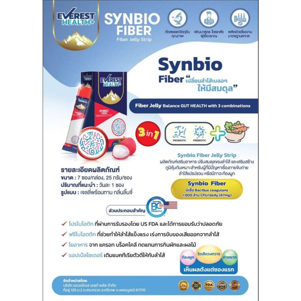 EVEREST HEALTH+ ( " สีแดง " 1 กล่อง 7 ซอง " ) Synbio Fiber กลิ่น ลิ้นจี่