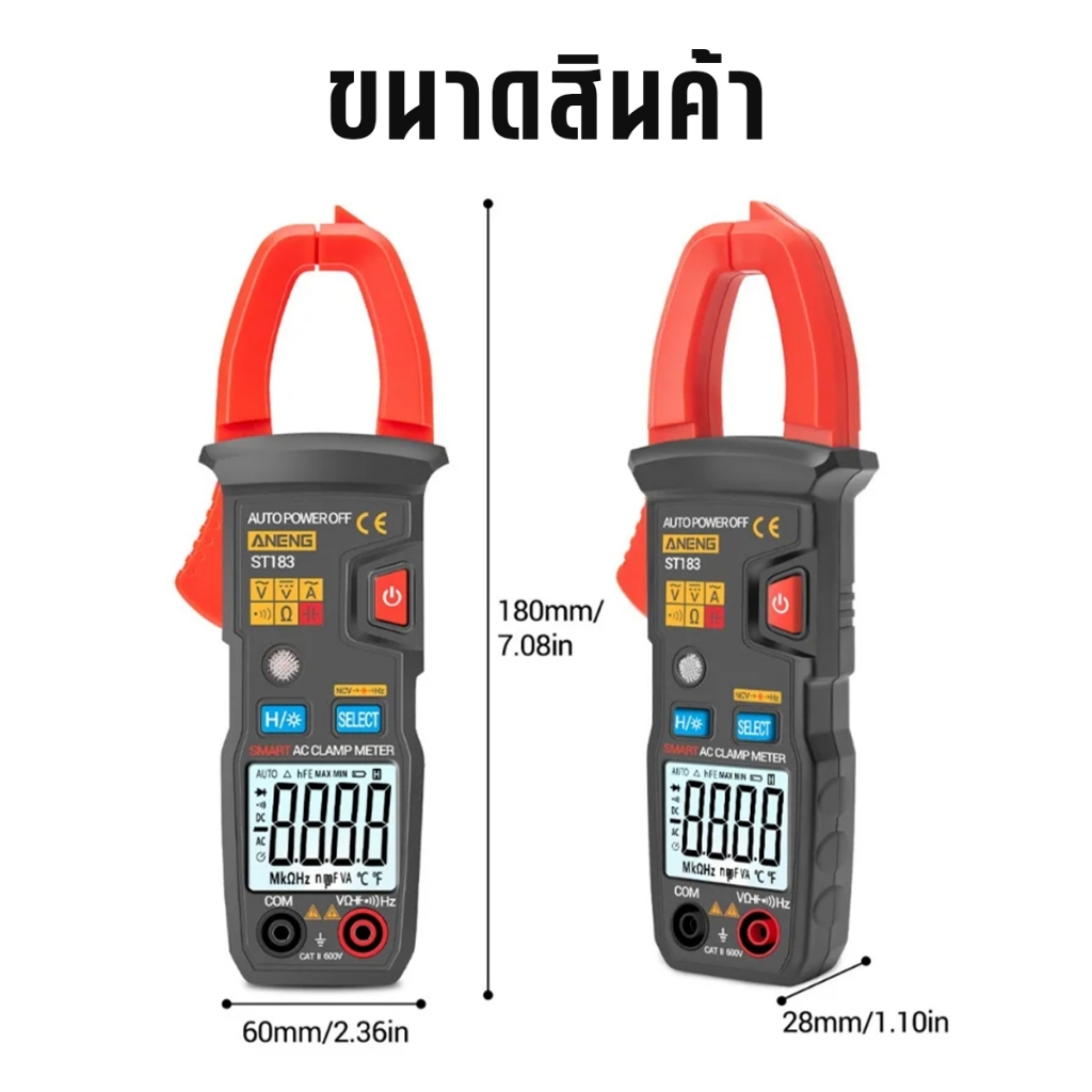 ANENG เครื่องวัดกระแสไฟ ดิจิตอล 600A แคลมป์มิเตอร์ รุ่น ST183 หน้าจอ LCD เกจวัดแรงดันไฟฟ้า พร้อมไฟแบ็คไลท์ แท้รับประกัน