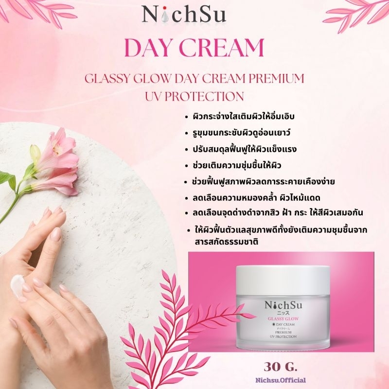 NICHSU Glassy Glow Day Cream ครีมบำรุงผิวหน้ากลางวัน ผิวกระจ่างใส 30g