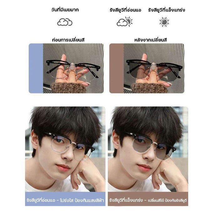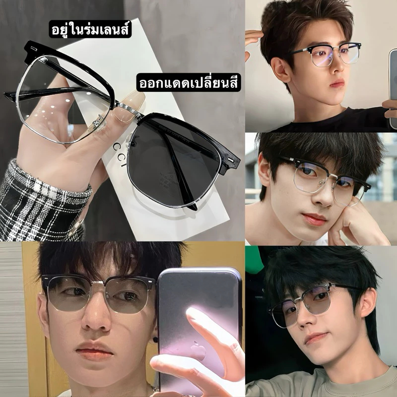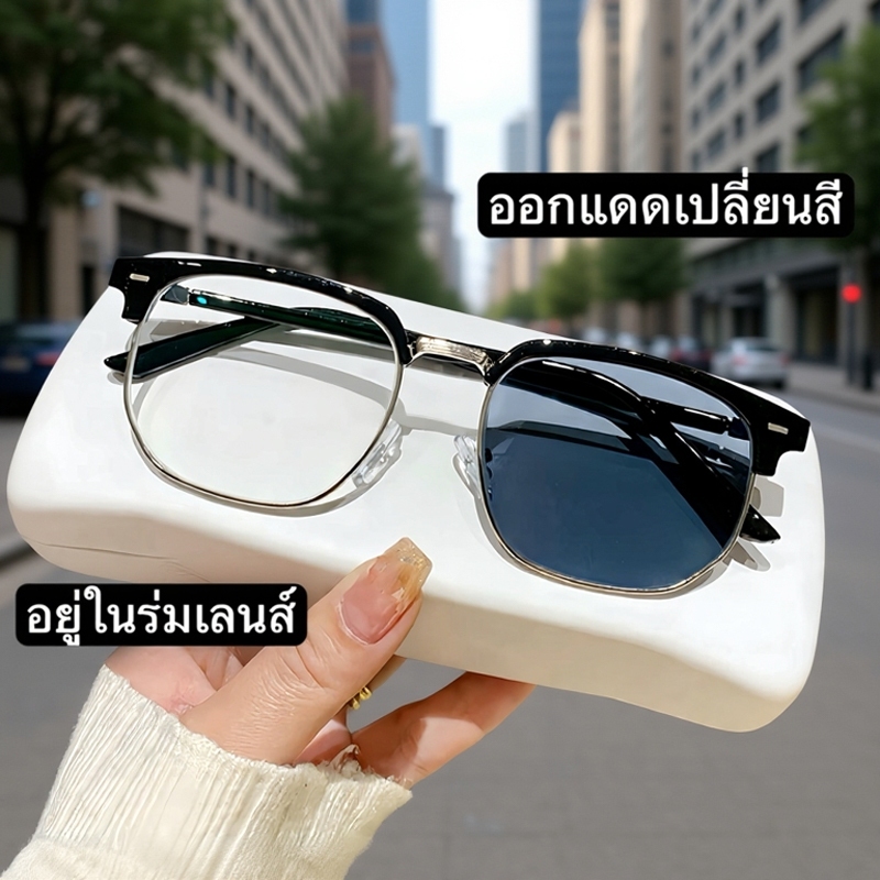 [จัดส่งในกทม]แว่นกรองแสงออกแดดเปลี่ยนสีแว่นแฟชั่น แว่นสายตาสั้นเลนส์ออโต้ แว่นเปลี่ยนสีแว่นกรองแสงสีฟ้ากรองแสงคอมมือถือ