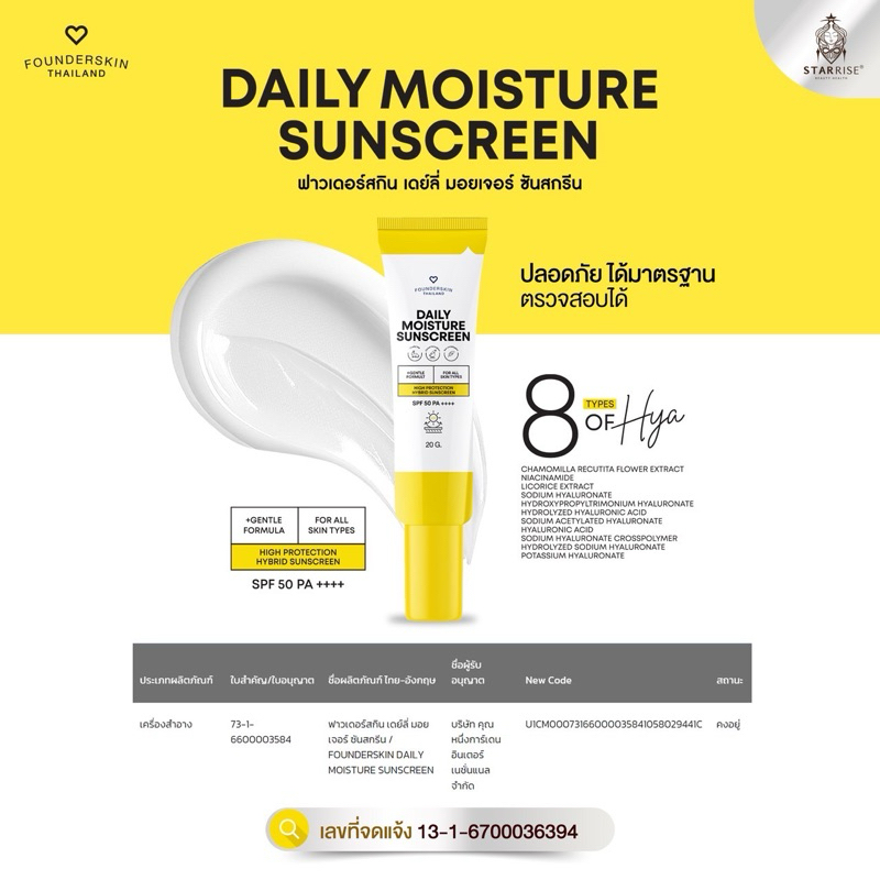 Daily Moisture Sunscreen กันแดดฟาวเดอร์สกิน SPF 50 pA++++