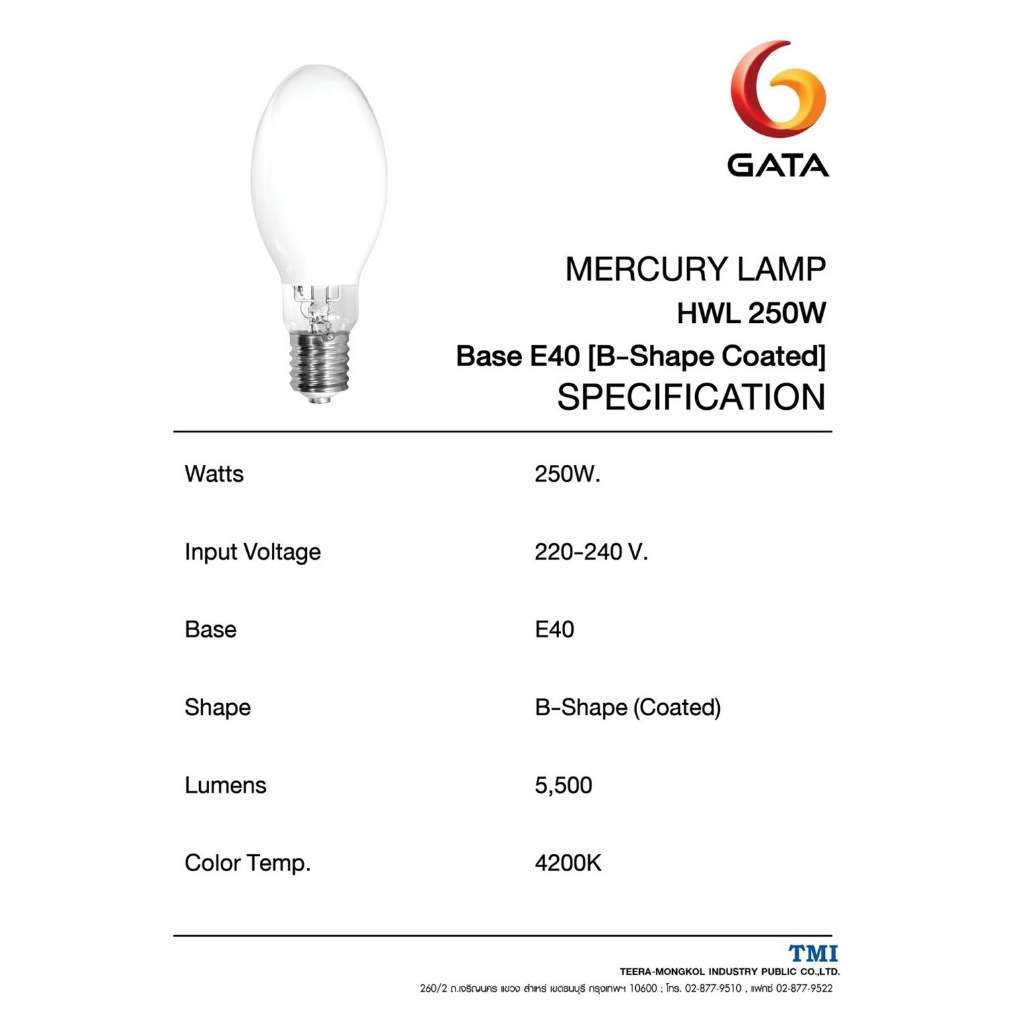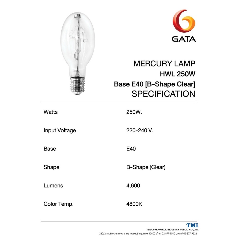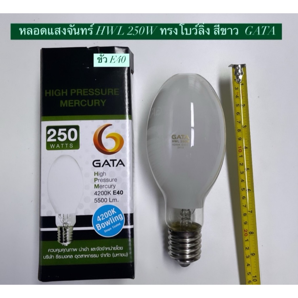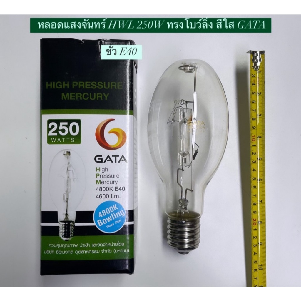 หลอดแสงจันทร์ 250W / 500W ( HWL รุ่นต่อตรง ) ทรงโบว์ลิ่ง ขั้วE27 และ E40 GATA ( High Pressure Mercury Blended Lamp )