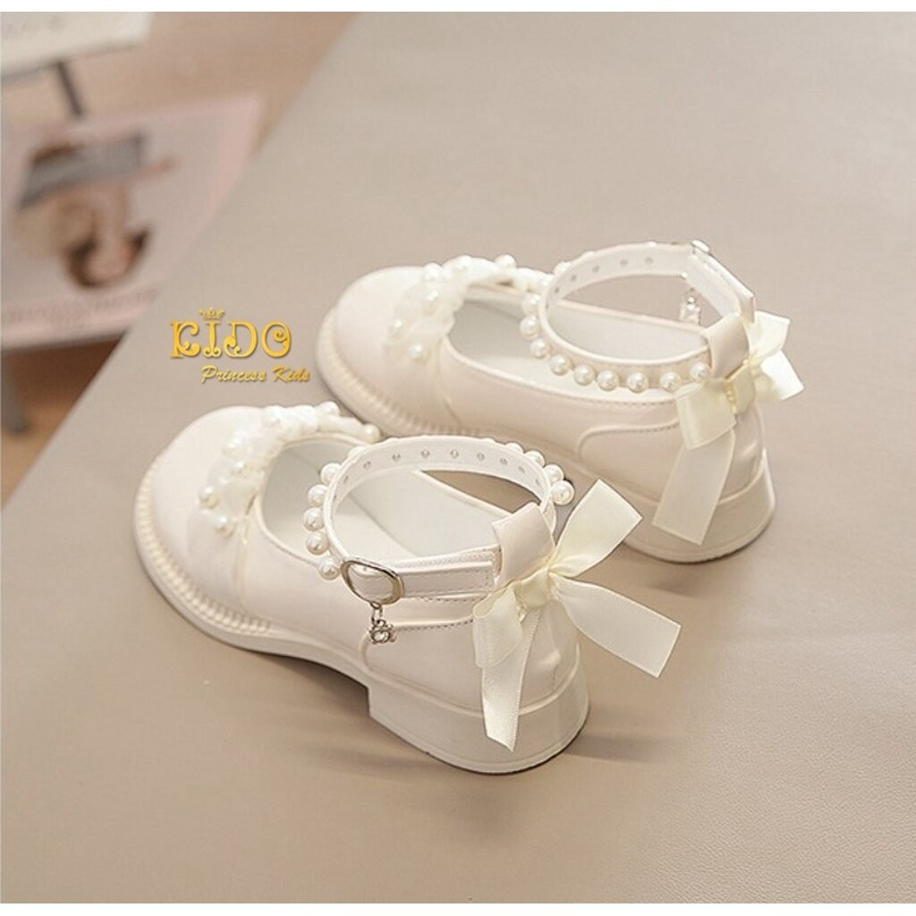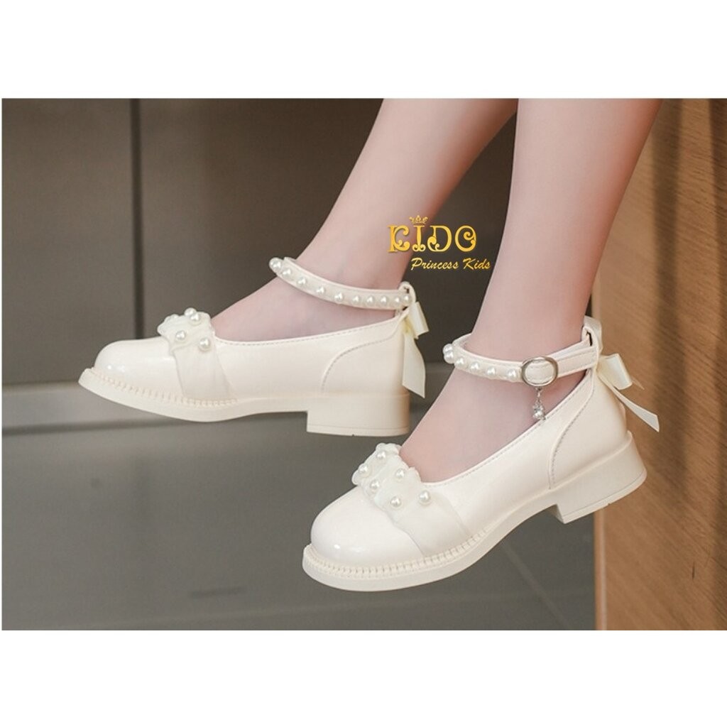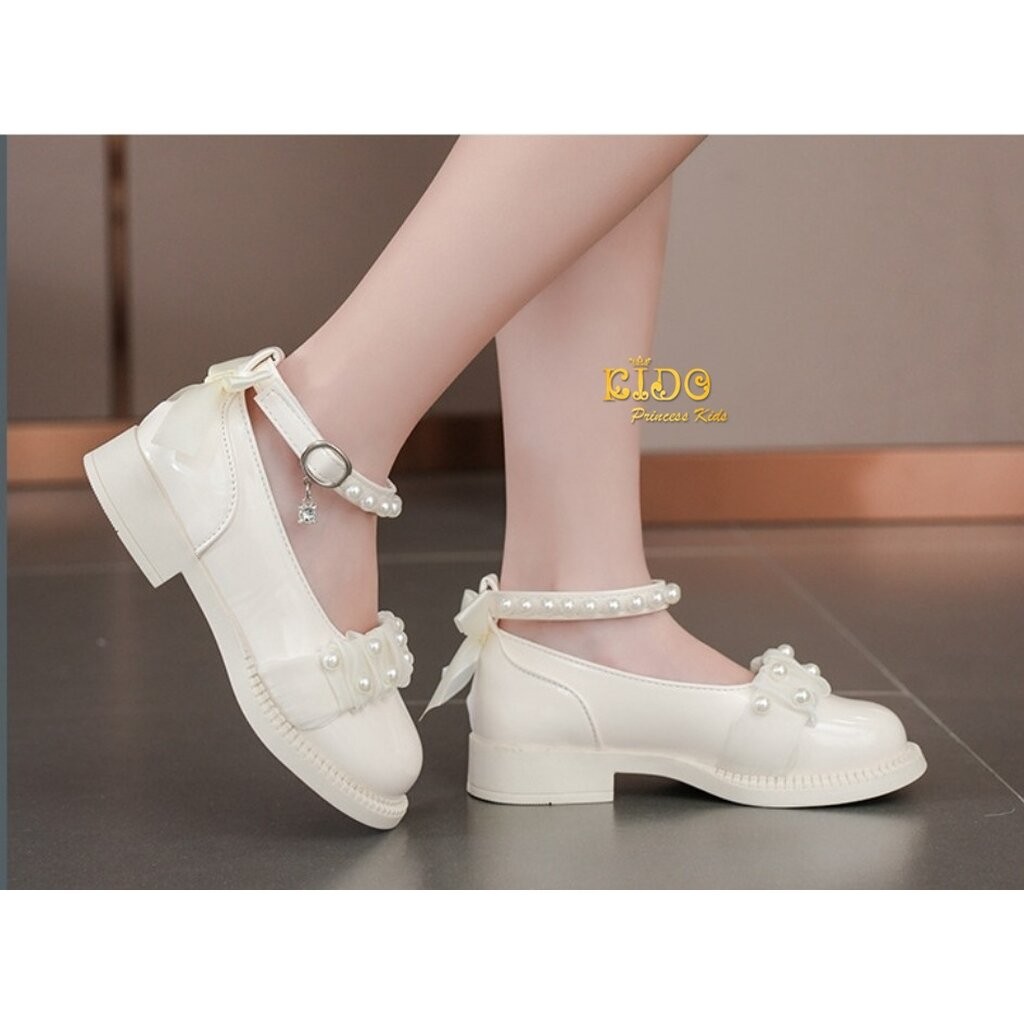 Tรองเท้าเด็ก(หน้าร้านอยู่รัชดา ลองได้)H168 สีขาวคัทชู รัดข้อเท้าแต่งมุก สวยหรู