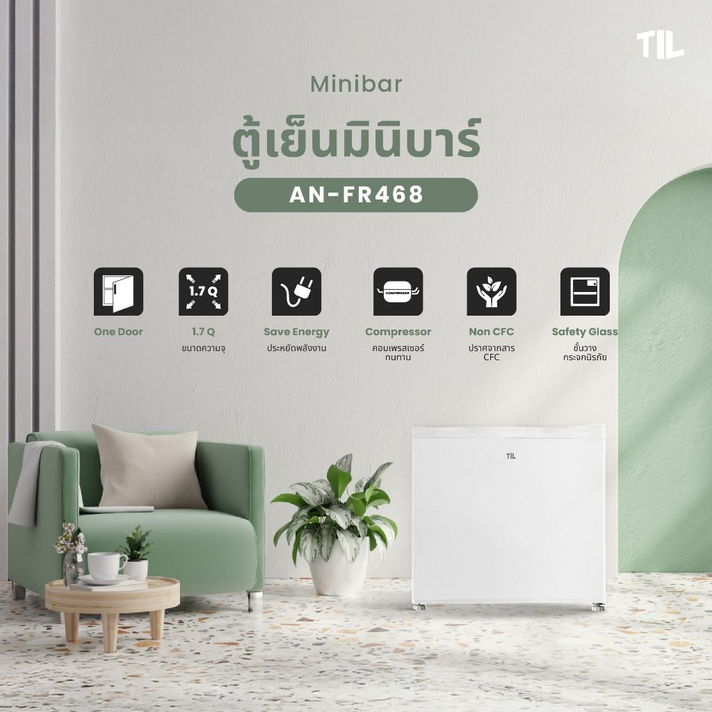 TIL ตู้เย็นมินิบาร์ ขนาด 1.7 คิว ความจุ 46 ลิตร สีขาว / สีดำ รุ่น AN-FR468 TIL เหมาะสำหรับแช่ น้ำดื่ม ผลไม้