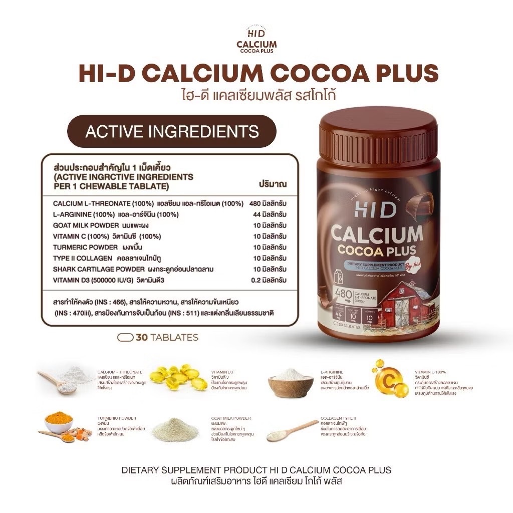 1แถม1HI D CALCIUM PLUS ไฮดี แคลเซียมเคี้ยวสูง รสโกโก้ แคลเซียมสูง ( 1 กระปุก 30 เม็ด )