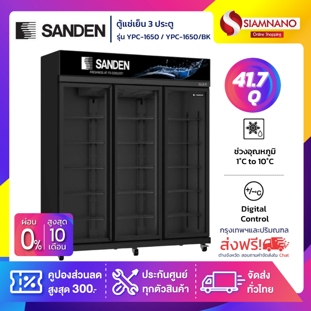 ตู้แช่เย็น 3 ประตู Sanden รุ่น YPC-1650/BK ขนาด 41.0Q สีดำ *จัดส่งฟรีในเขตกรุงเทพฯและปริมณฑลเท่านั้น*