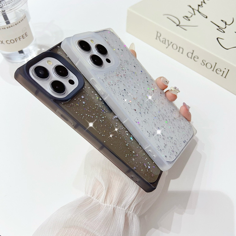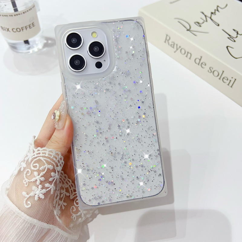 สําหรับ iPhone 15 Pro Max 12 Pro 14 Plus 11 13 รูขนาดใหญ่สแควร์ glitter star TPU เคสโทรศัพท์แบบนุ่ม