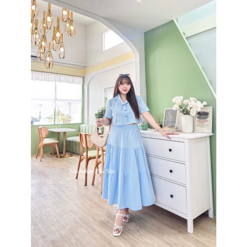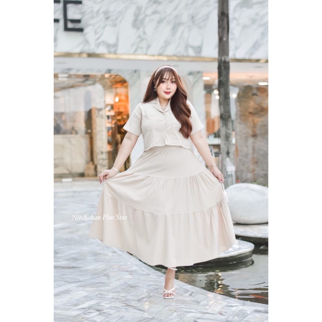 เชต2ชิ้น เสื้อ+กระโปรงลายโบว์ ทรงสวย ใส่พรางหุ่นได้ดีเวอร์ ใส่สวยดูแพง ดูสูงเพรียวงานสวยน่ารัก ถ่ายรูปชิวๆ พลัสไซส์ NP
