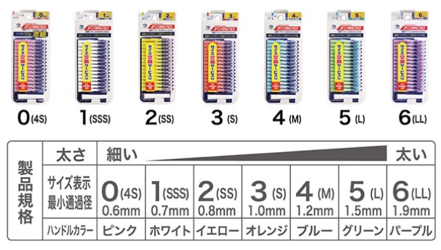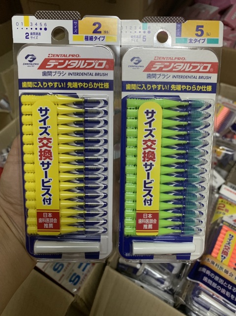 แปรงซอกฟัน Dentalpro 15 , 10 ชิ้น ญี่ปุ่นแท้ 100% ด้ามตรง ขนกรวย มี 7 ขนาด