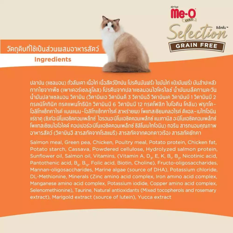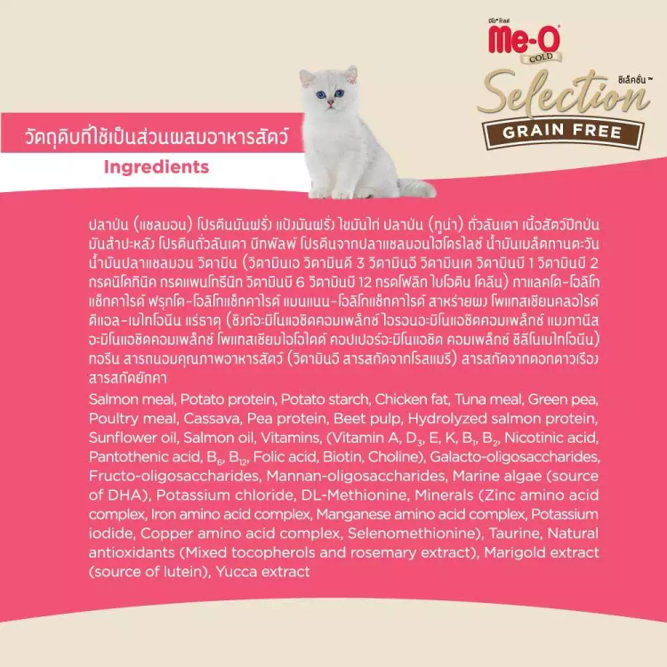 [กระสอบ มีถุงแบ่ง] Meo Gold Selection Grain Free มีโอ โกลด์ ซีเล็คชั่น เกรนฟรี อาหารแมว ลูกแมว เลี้ยงในบ้าน แซลมอน 10 กก
