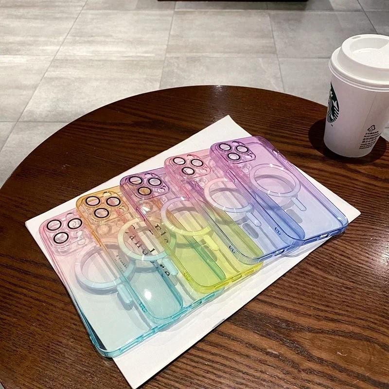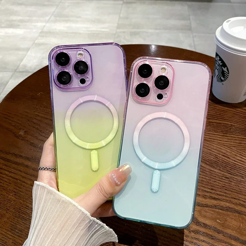 หรูหราไล่โทนสีรูปแบบกรณีชาร์จไร้สายสําหรับ ไอโฟน 11 12 13 14 15 16 มือโปร สูงสุด บวก นุ่มฝาครอบแม่เหล็กโปร่งใส