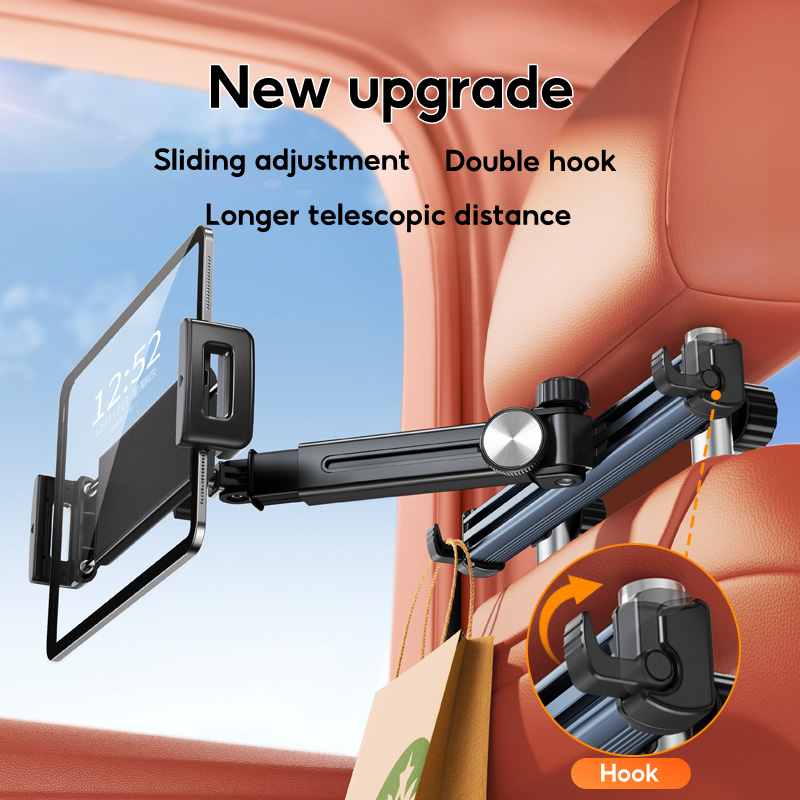 OATSBASF หมอนรองหลังรถยนต์ ที่วางแท็บเล็ต โทรศัพท์ ขาตั้งในรถ มีตะขอเก็บของ ที่พิงศีรษะด้านหลัง สําหรับโทรศัพท์ 4.7-12.9 นิ้ว แท็บเล็ต