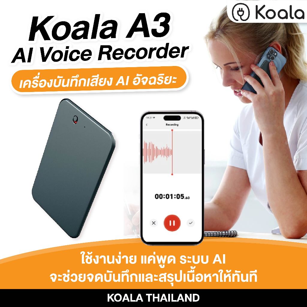 เครื่องบันทึกเสียง Koala A3 AI อัจฉริยะ ถอดข้อความอัตโนมัติ รองรับภาษาไทย แปลภาษาได้ บางเบา