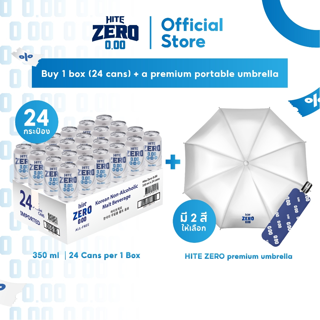 [โปรฯพิเศษ] hite ZERO All Free x 24 cans แถมฟรี ร่ม hite ZERO 1 คัน