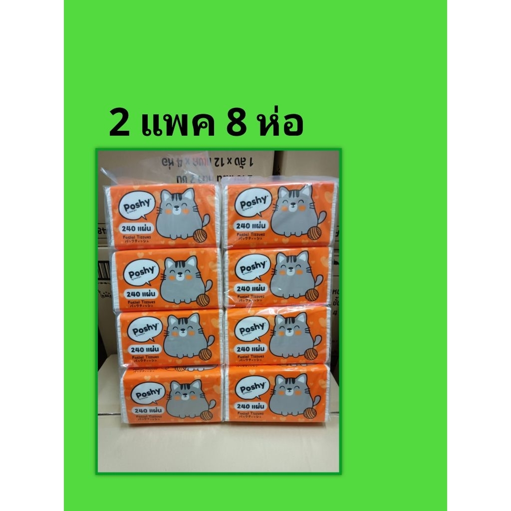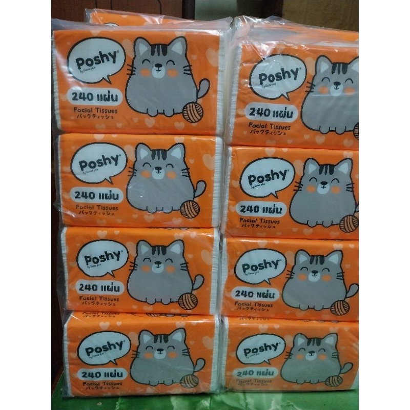 ทิชชู่พอชชี่ poshy 240 แผ่น 2 แพค 8 ห่อ ราคา 210.- ทิชชู่เช็ดหน้า