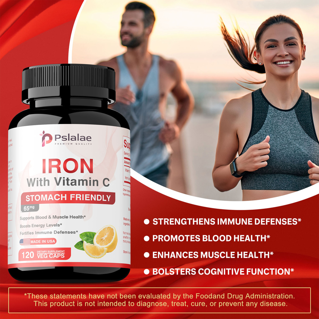 แคปซูล Pslalae Iron & Vitamin C รองรับสุขภาพเลือดและพลังงาน สูตรที่เป็นมิตรต่อท้อง มังสวิรัติ Made in USA