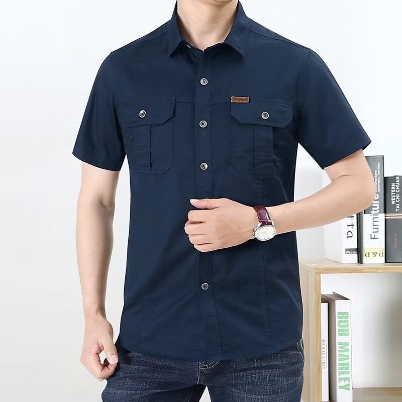 HANLU เสื้อยืดคอกลมแขนสั้นสีพื้นสำหรับผู้ชาย เทรนด์ฤดูร้อน พักผ่อนกลางแจ้ง ระบายอากาศได้ดี