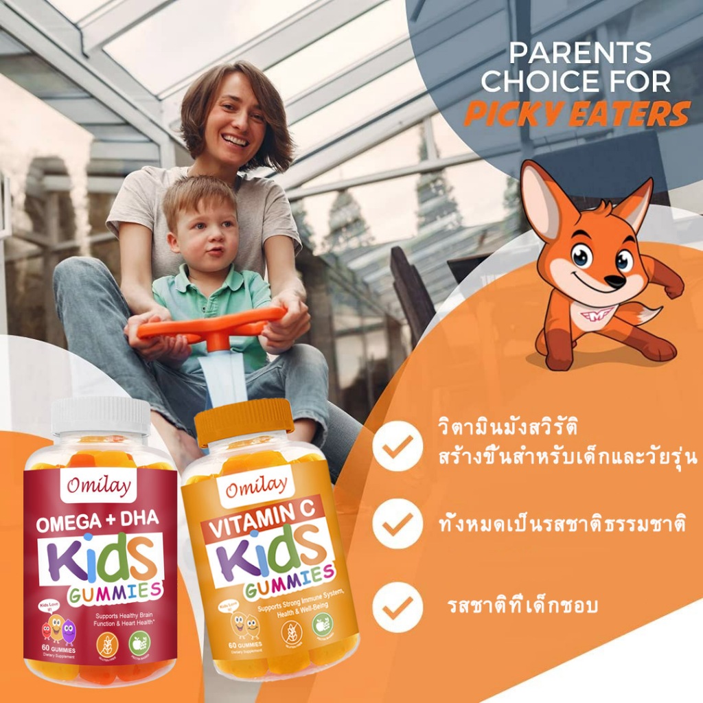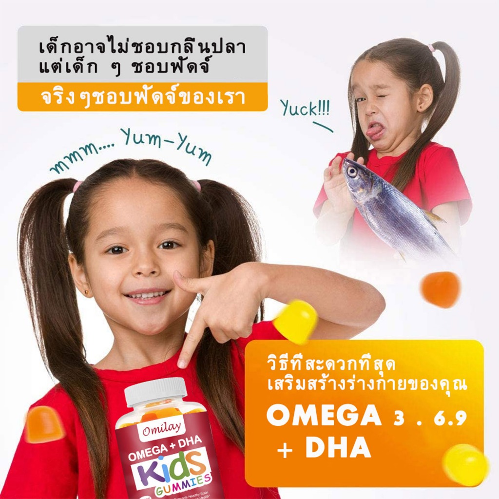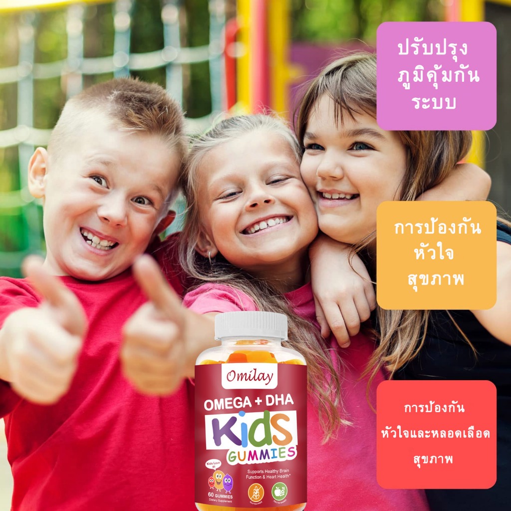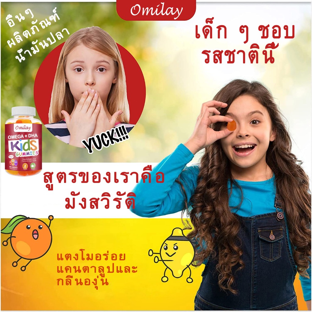 Omilay Omega3 DHA วิตามินเด็ก โอเมก้า3 Omega 3 6 9บํารุงสายตา โอเมก้า 3 DHA เด็ก Supplement Vegan 60 เม็ด