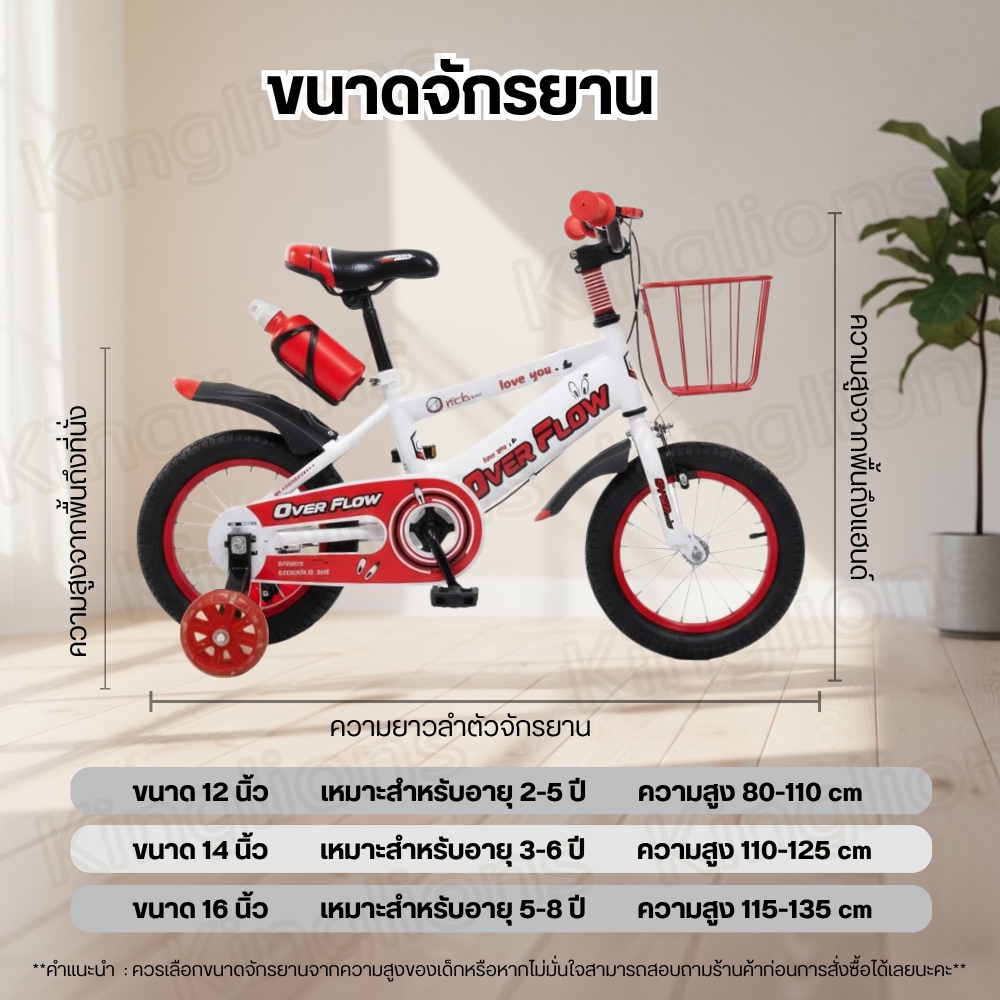 จักรยานเด็ก 12นิ้ว 14นิ้ว 16นิ้ว Kid Bike เบาะปรับระดับได้ ล้อมีไฟ ของแท้ มีมอก.จักรยานเด็ก 4 ล้อ