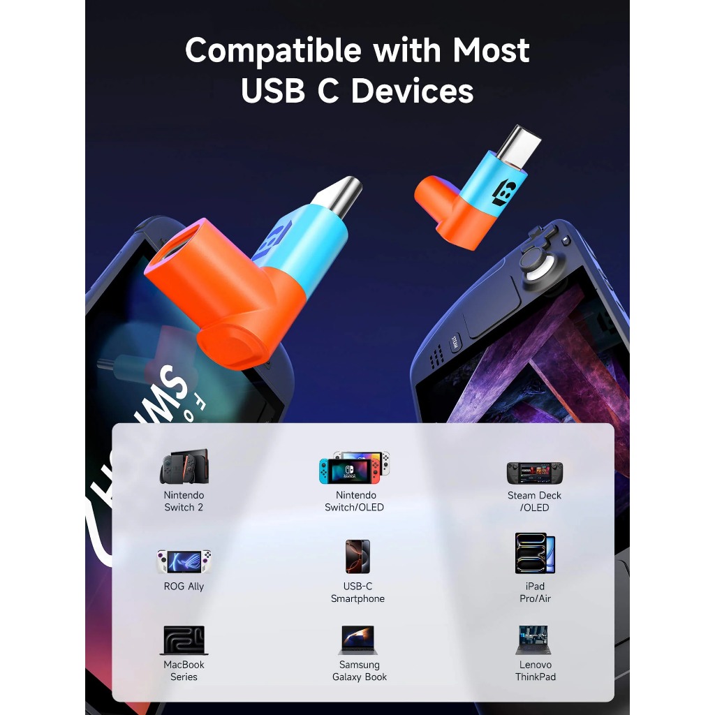 JSAUX 90° อะแดปเตอร์มุมขวา USB-C เป็น USB-C สําหรับ Nintendo Switch 2 (2025), ROG Ally, ROG Xbox Ally,ROG Xbox Ally X,Steam Deck, Switch, MacBook Pro, Surface Book 2-DD0008