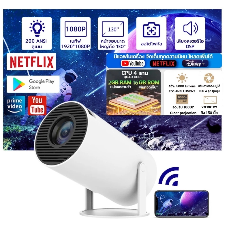 โปรเจคเตอร์มินิ projector HY300 PRO โปรเจคเตอร์ดูหนัง WiFi 1920*1080P HD รองรับการแชร์หน้าจอมือถือ โปรเจคเตอร์ 4k