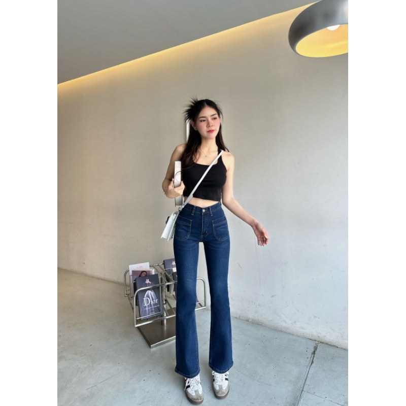 รหัส 6703 กางเกงยีนส์ขาม้า แต่งกระเป๋าหน้า