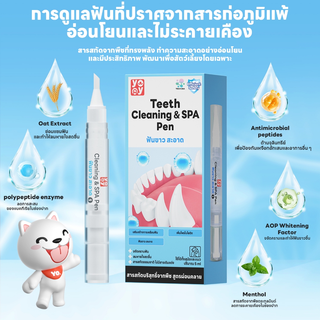 yoyopet: 2in1 ปากกาแปรงฟันสัตว์เลี้ยง ขจัดหินปูน ฟันขาวสวย ระงับกลิ่นปาก สุขภาพเหงือกดี ฟันแข็งแรง