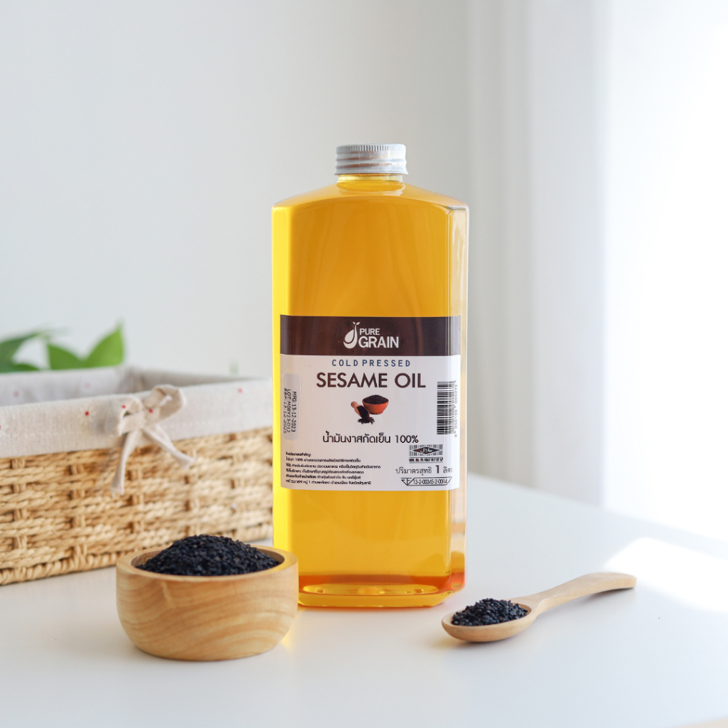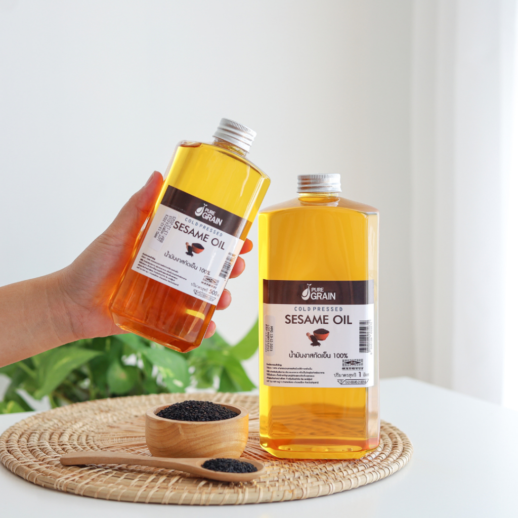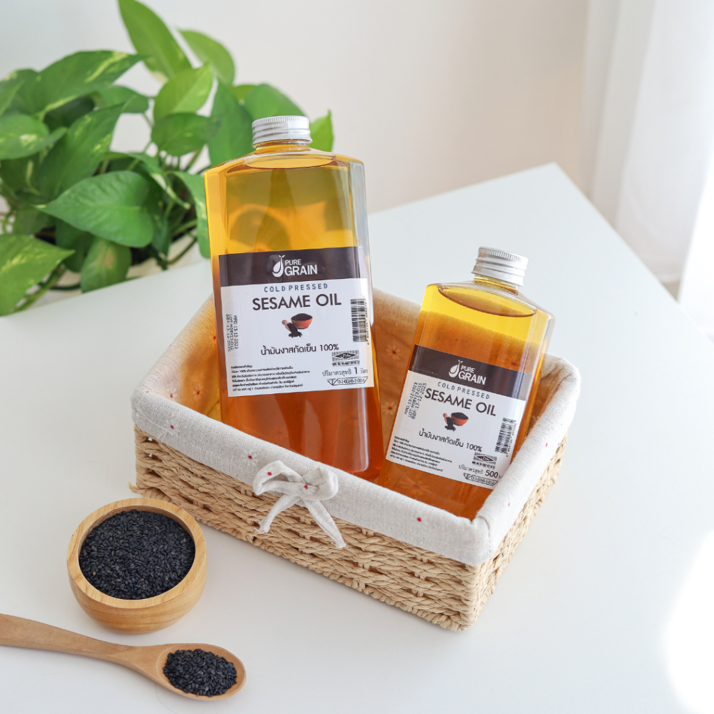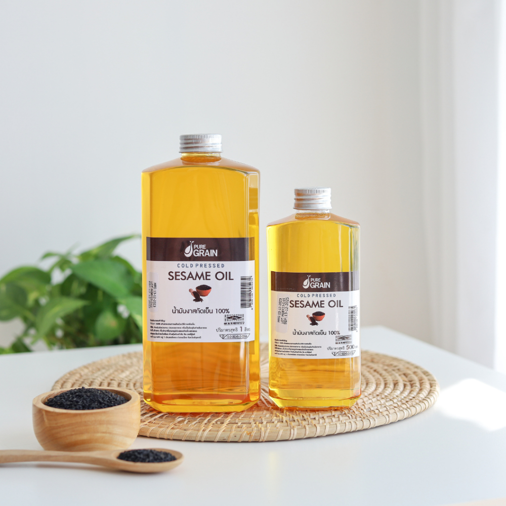 เพียวเกรน น้ำมันงาดำสกัดเย็น100% (ขนาด 500ML , 1000ML)