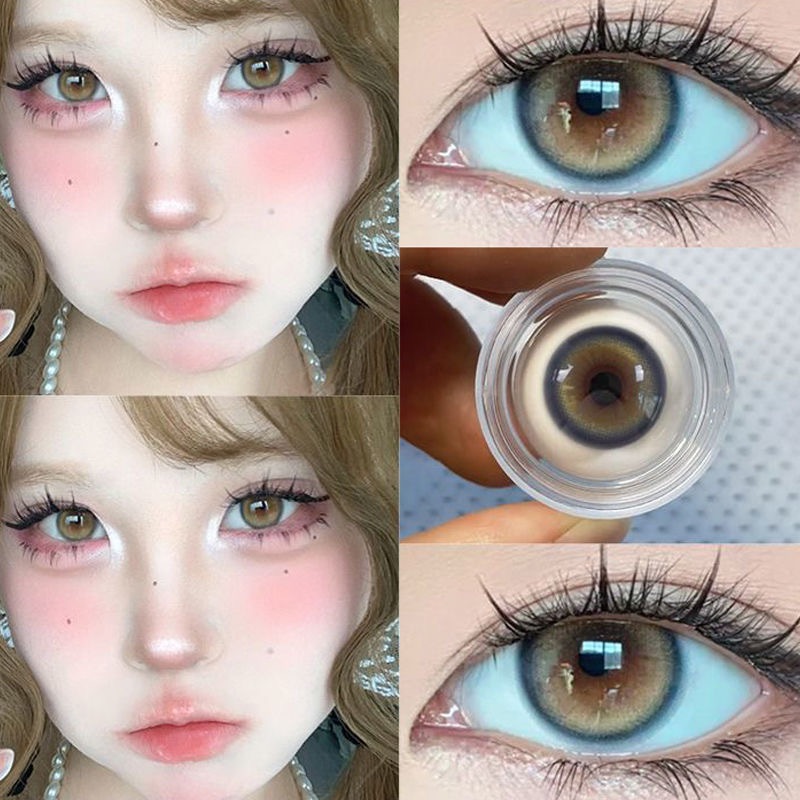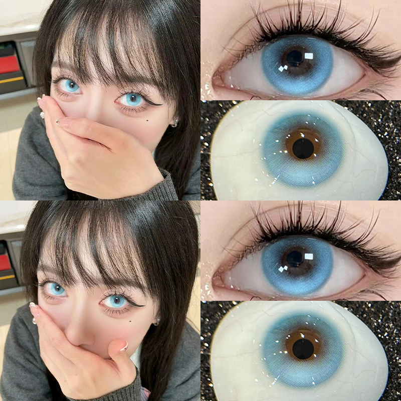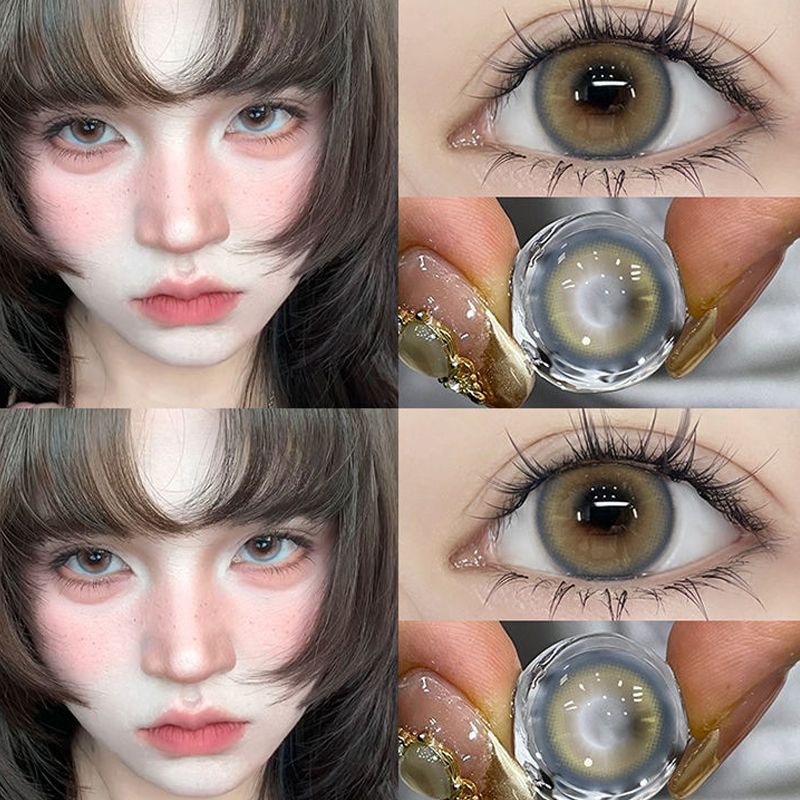 อี้เหมยซี 2ชิ้นคอนแทคเลนส์แหวนสีฟ้าสีเหลืองอําพันนักเรียน14.2มมจิตรกรชุดนุ่มสบาย0เกรด6เดือนใช้เลนส์สีนุ่ม2024ใหม่