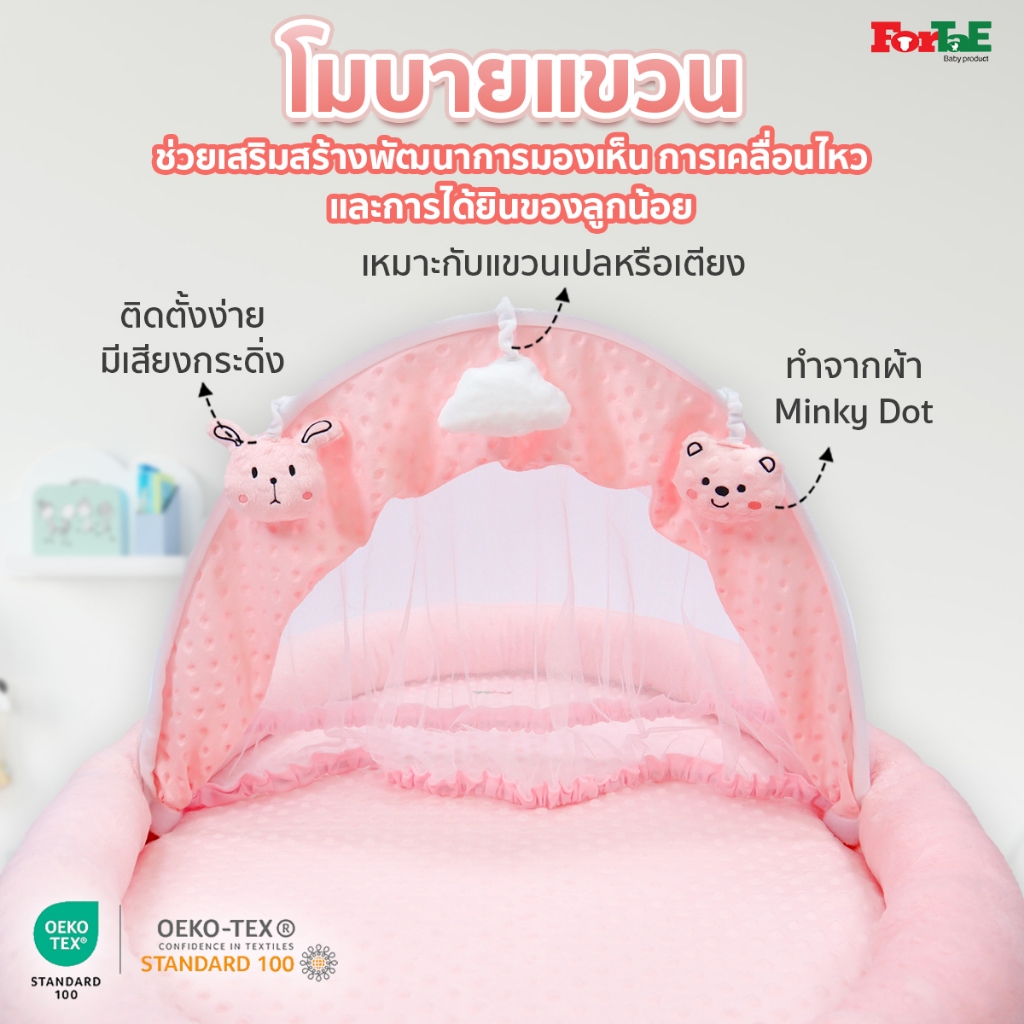 PM032 Fortae(ฟอร์เต้) ที่นอนเด็กมุ้งครอบ ที่นอนมุ้งพร้อมโมบายของเล่น ขนาดใหญ่ ผ้าMinky Dot ถอดซักได้