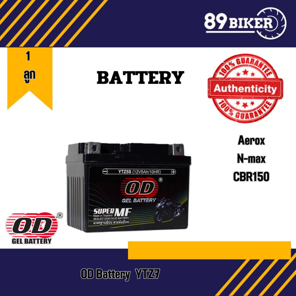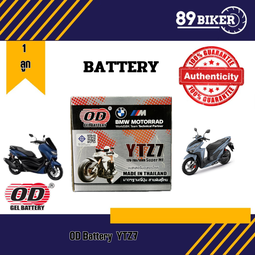 OD แบตเตอรี่ รุ่น YTZ7 (12V 7AH) แบบแห้ง (สำหรับรถจักรยานยนต์) แบตAerox Nmax CBR150