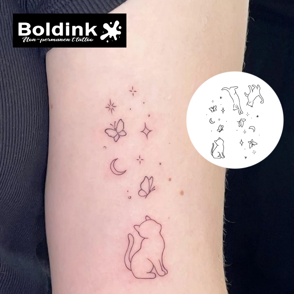 กระต่ายแมวผีเสื้อรอยสักชั่วคราว,ล่าสุดถึง15วันเทคโนโลยีใหม่เมจิกกันน้ํากึ่งถาวรสติกเกอร์,เหมาะสําหรับงานปาร์ตี้และชุมนุ