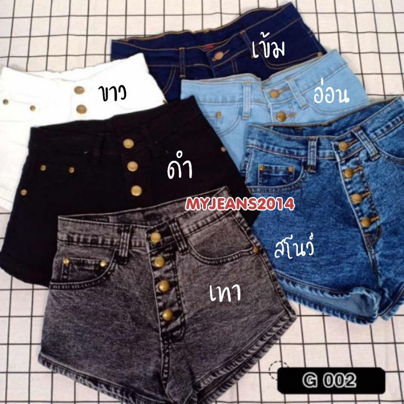 กางเกงยีนส์เอวสูง กระดุมหน้า ขาสั้นใส่ไปทะเล ผ้ายีนส์ยืด เข้ารูป